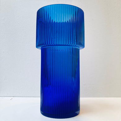 • FLORERO VIDRIO ESTRIADO AZUL